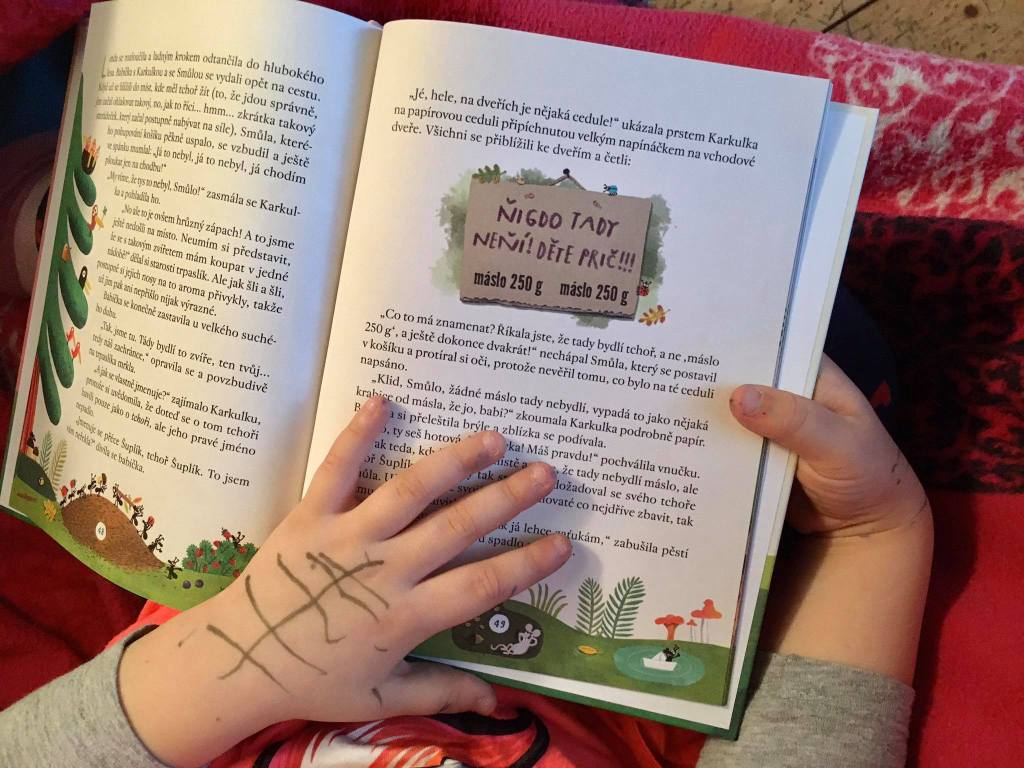 U této knížky, kterou budou děti hltat s pusinkami dokořán, se dospělý čtenář opravdu pobaví. Možná, si trochu zavzpomíná na své dětství (já například vzpomínala, když jsem četla, jak Karkulka lakovala vlkovi drápy), a zasměje se obratům, které pochopí spíše dospělí než malé děti. Dost dobře věřím, že tato knížka však bude zábavná i pro školáčky – čerstvé čtenáře.